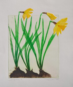 2021Jonquilles / Narcissen - droge naald - uitgezaagde zinkplaatjes - meerkleuren druk - oplage 1/5
